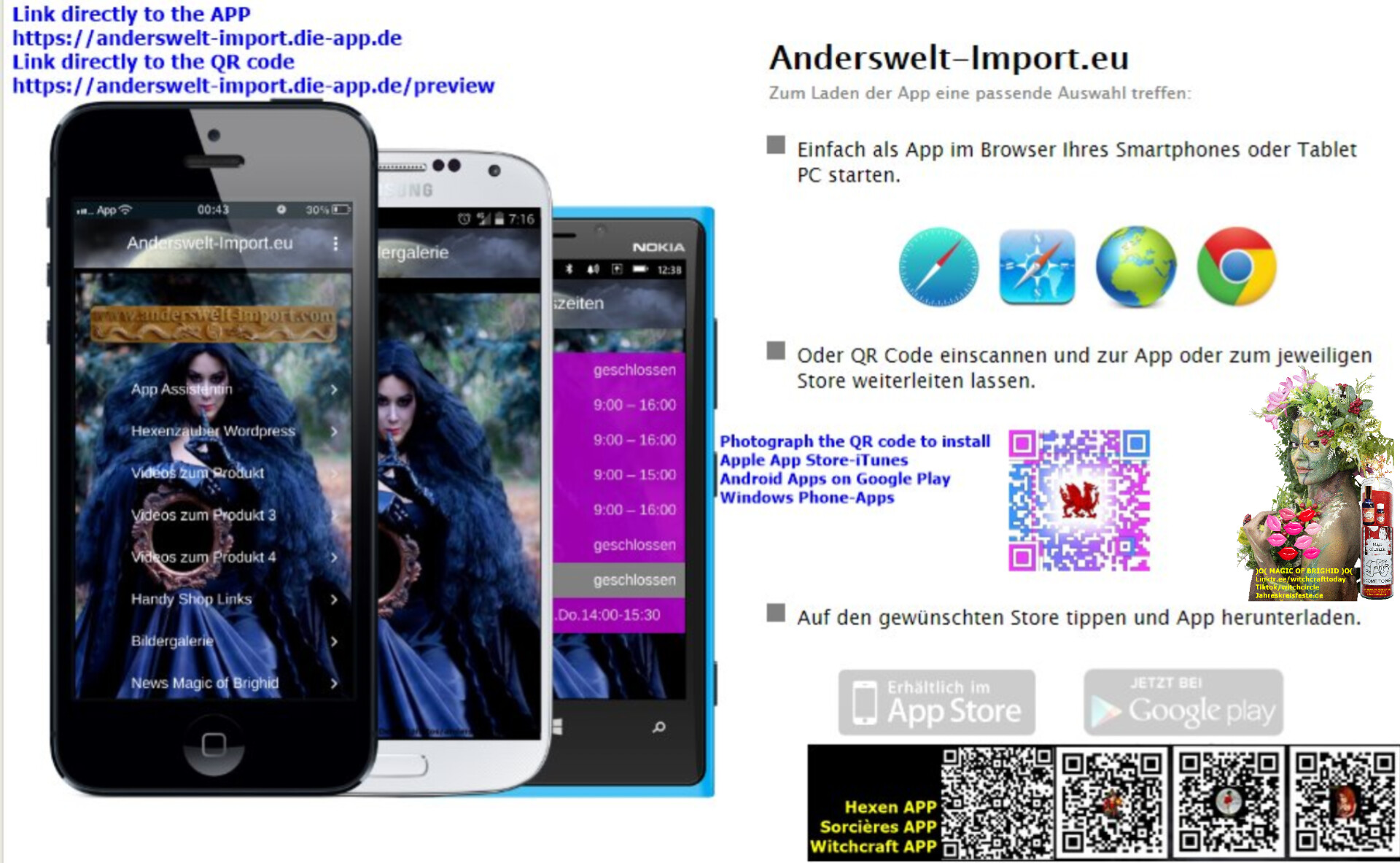 The brand name - ANDERSWELT - 1996 and - Magic of Brighid - 2015 is registered and secured as a word mark in Alicante throughout Europe.